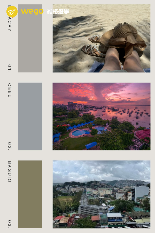 - 宿霧:大城市+交通便利,語言學校選擇超多,算是「遊學大本營」。